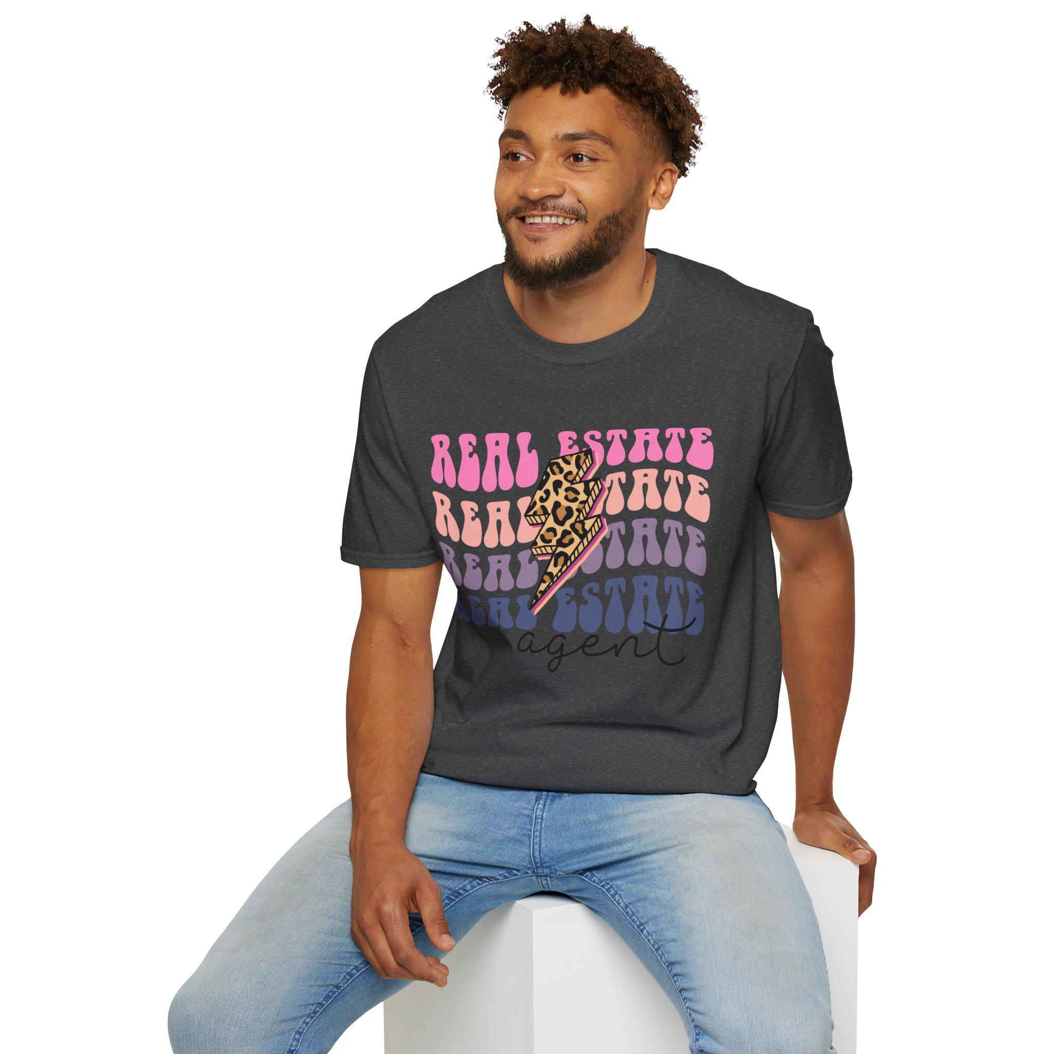 This lightweight tee brings playful confidence to the workday and weekend alike. A soft white canvas carries retro-inspired stacked typography in sunfaded pinks and purples, anchored by a bold leopard-print lightning bolt — a wink to movers and closers who blend personality with professionalism. The crew neck and classic fit sit easy under blazers or over jeans, while the smooth ring-spun cotton keeps print colors crisp and vibrant wash after wash. Wear it to show you sell homes with flair, or keep it for casual days when you want to feel both stylish and approachable.